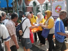 KUALA LUMPUR, 3 Januari 2015 - Golongan gelandangan di Kuala Lumpur terus disantuni dengan berlangsungnya Program Agihan Makan Tengahari di Masjid Jamek Bandaraya Kuala Lumpur. Program ini merupakan aktiviti bulanan yang telah berlangsung sejak Ogos 2014 secara kolaborasi antara YBK dan Masjid Jamek Bandaraya Kuala Lumpur. Sebanyak 100 pek makanan dan minuman disediakan untuk edaran.