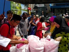 Kuala Lumpur, 13 Feb 2016 - Program Santuni Gelandangan yang dilaksanakan secara bulanan oleh YBK telah telah bermula sejak tahun 2015 yang lalu. Sebanyak 100 pek makanan sumbangan YBK telah diagihkan kepada golongan gelandangan yang menunggu di pintu masuk Masjid Jamek Bandaraya Kuala Lumpur. Proses agihan dilaksanakan dengan semangat saling membantu antara pegawai masjid, pegawai YBK dan sukarelawan yang hadir. Agihan bermula pada jam 11:45 pagi selepas bacaan doa.