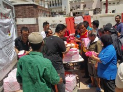 Edaran dimulakan pada jam 11:45 pagi apabila kumpulan gelandangan ini mula berbaris di pintu masuk masjid. Selepas doa dibaca, pek-pek makanan mula diedarkan oleh sukarelawan masjid dan dibantu oleh kakitangan YBK yang turut sama hadir. Pihak masjid turut menerima sumbangan pek makanan daripada Jabatan Agama Islam Wilayah Persekutuan (JAWI) di mana ia turut diedarkan bersama-sama.
