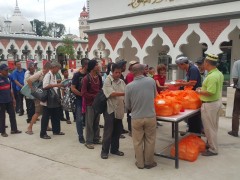 Edaran dimulakan pada jam 11:45 pagi apabila kumpulan gelandangan ini mula berbaris di pintu masuk masjid. Selepas doa dibaca, pek-pek makanan mula diedarkan oleh sukarelawan masjid dan dibantu oleh kakitangan YBK yang turut sama hadir. Pihak masjid turut menerima sumbangan pek makanan daripada Jabatan Agama Islam Wilayah Persekutuan (JAWI) di mana ia turut diedarkan bersama-sama.