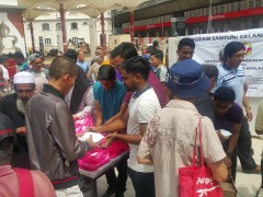 KUALA LUMPUR, 12 November 2016 - Yayasan Basmi Kemiskinan hari ini meneruskan Program Santuni Gelandangan di Masjid Jamek Bandaraya Kuala Lumpur yang diadakan pada setiap hari Sabtu. Pek-pek makanan sebanyak 100 unit pada minggu ini ditaja oleh kakitangan Yayasan Basmi Kemiskinan. Turut serta, pelajar daripada Universiti Malaysia Pahang (UMP).