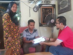 Kuala Kangsar, 4/8/2016 - Pn Zainab Hasan kehilangan suaminya kira-kira sebulan yang lalu akibat kemalangan jalan raya. Suaminya yang bekerja sebagai pemandu lori kilang mee di kawasan industri Sungai Siput, Perak. Ketika kemalangan berlaku arwah suaminya sepatutnya masih lagi bercuti akibat masalah kesihatan.