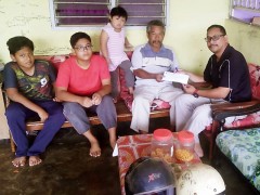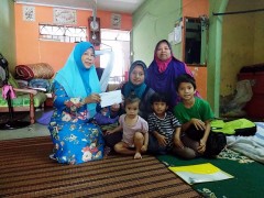 KUNDANG, 15 Mei 2018 - Azizah bt Kasran telah berpisah dengan suami 3 tahun yang lalu. Kini dengan pendapatan RM800 beliau menjaga 4 orang anak yang masih belajar serta bersekolah yang berumur di antara 19 tahun hingga 9 tahun. Dengan pelbagai masalah yang perlu diselesaikan akibat dari perpisahan beliau hanya mampu berdoa supaya ada cahaya kegembiraan. Keluarga ini boleh dihubungi di talian 012-3628469. Sumbangan SKR 2018 oleh Mohd Roshaimi Mat Rasid telah di sampaikan oleh Puan Rashidah (Sukarelawan YBK). [AI-SGR-005]