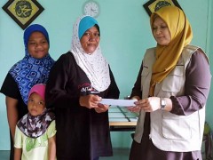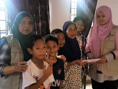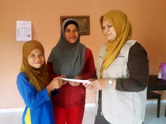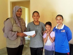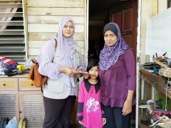 KG PANDAN (KLANG), 15 Mei 2018 - Membesarkan anak-anak tanpa suami disisi tidak mematahkan semangat Puan Azlina Mokhtar mencari rezeki untuk menyekolahkan 8 orang anaknya. Kematian suami setahun yang lalu banyak mengajar beliau untuk berdikari dan hasil daripada jualan burger dan bantuan zakat inilah keluarga ini berjimat cermat bagi meneruskan kehidupan mereka. Beliau dan anak-anak tinggal dirumah peninggalan arwah suami di Kg Pandan Klang. Keluarga ini boleh dihubungi ditalian 0163945527. Sumbangan SKR 2018 oleh Encik Rodrigue A.H. Fontaine telah disampaikan oleh Rosmaiza Mohd (YBK). [AZ-SGR-013]