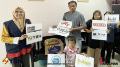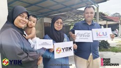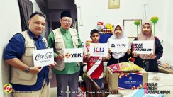 Penyerahan sumbangan tunai berjumlah RM600 hasil tajaan Coca-Cola telah disempurnakan oleh wakil YBK iaitu Cik Raudah Zakaria. Keluarga ini turut menerima sumbangan Kotak Rezeki daripada ICU sebagai sokongan keperluan makanan sempena bulan Ramadhan.