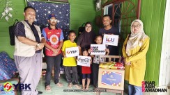 Penyerahan sumbangan wang tunai sebanyak RM600 hasil sumbangan PYBK Construction, bersama Kotak Rezeki bernilai RM150 daripada Jabatan Pembangunan Negeri Selangor (ICU Selangor) telah disampaikan oleh Cik Raudah Zakaria (Penyelaras YBK) dalam suasana penuh rasa syukur dan kesederhanaan di kediaman penerima.
